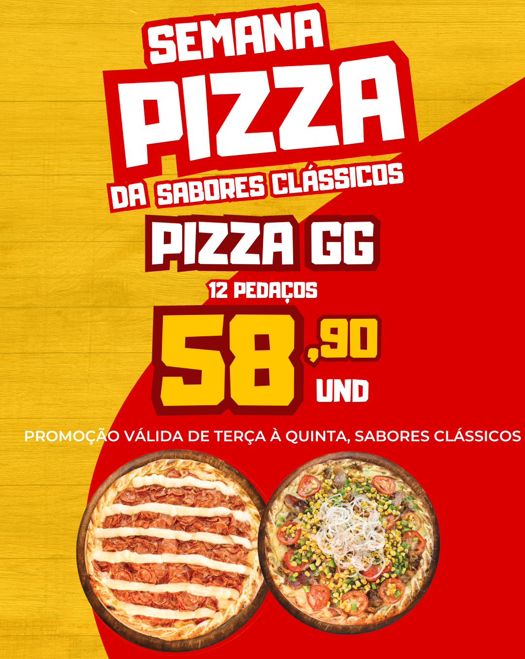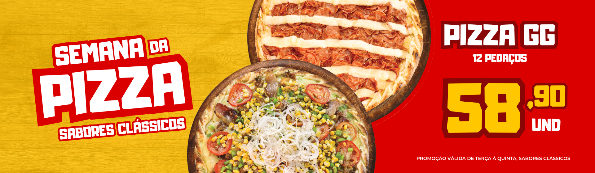 Pizza família 4 fatias escolha seus sabores.